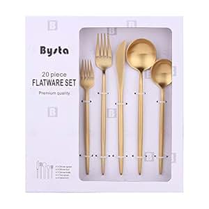 Matte gold silverware set, berglander satin gold flatware set, stainless steel with titianium plating, brushed gold cutlery set, service for 4 (matte gold) 4.3 out of 5 stars 1,304 $26.99 $ 26.